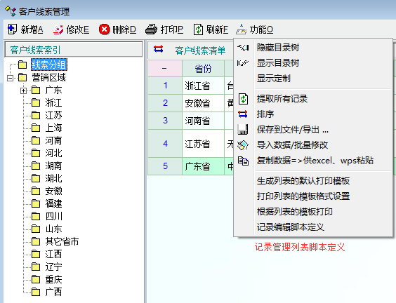 推荐_为客户线索、商业机会、客户接触添加记录管理列表脚本定义功能_产供销
