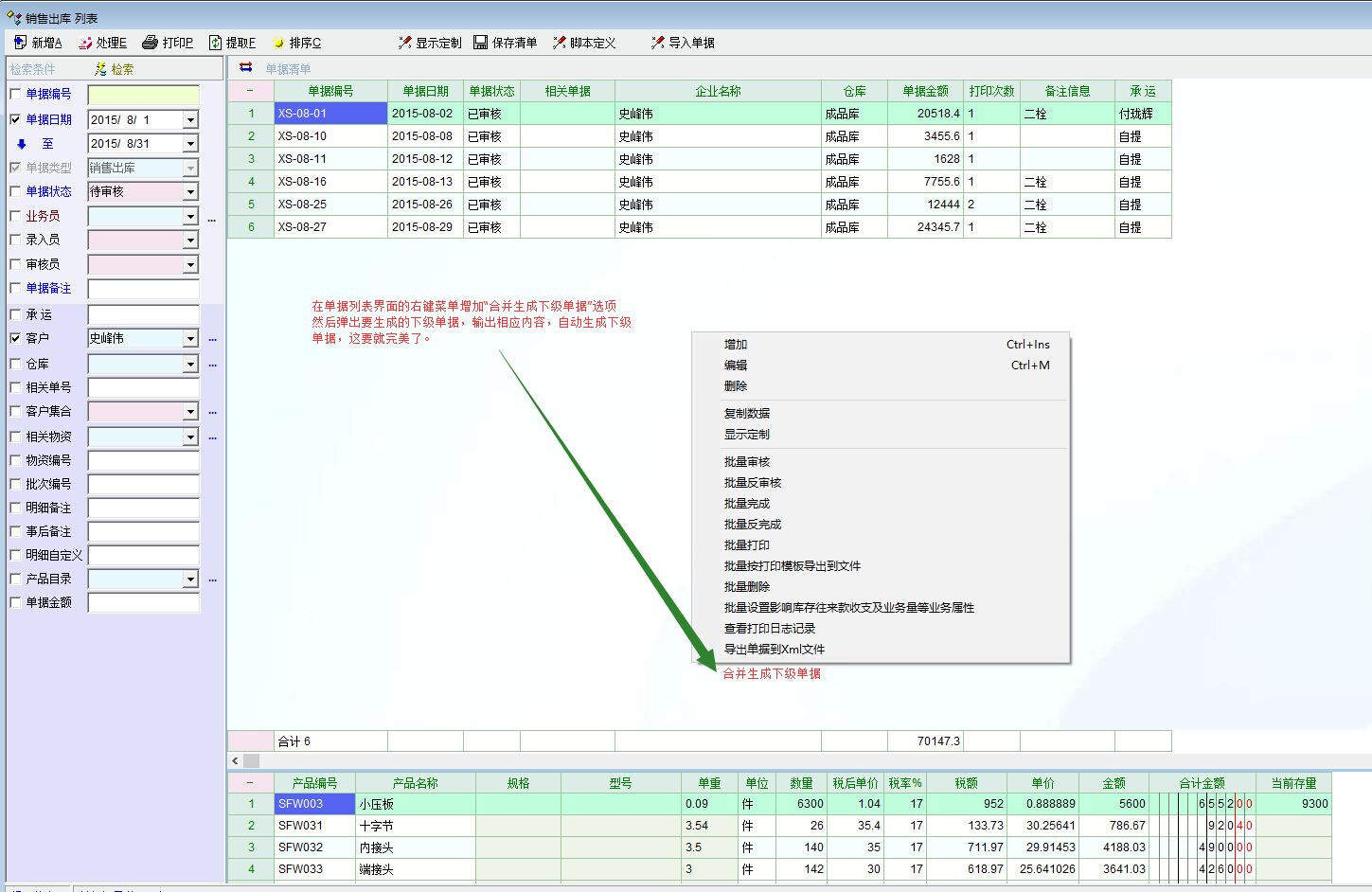 上面老兄提到的销售出库和发票,也是按客户选定和选定日期合并