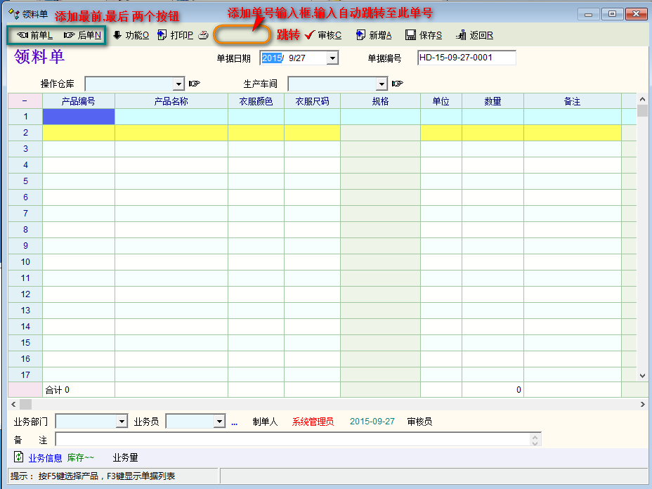 推荐_物资单据添加三按钮,最前,最后,跳转_产供销