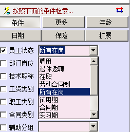 1、员工状态:增加组合码“所有在岗”,重启软件后生效,但“在职”组合码就不显示了。