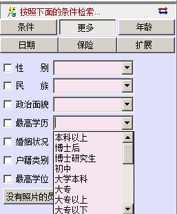 3、学历、学位信息里,组合码“本科以上”“硕士以上”,职称信息里”中级“”高级“”中级以上“组合码,均不显示。