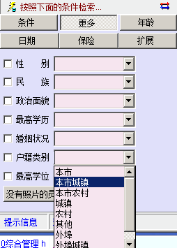 2、户籍类型模块,设置“本市”“外埠”“城镇”“农村”组合码,重启软件后,均无显示,无法设置。