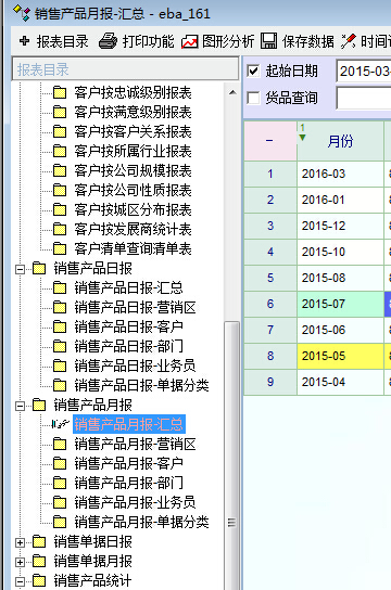 发现报表中没有显示销售记录为空的日期、月份的记录。比如下图中,2015年9月、11月,2016年2月没有销售记录,报表中就没有了这几个月的统计数字(0)。这样,就没法对比多年的同期的销售记录,并通过对以前的销售数据的分析、预测将来的销售趋势了。统计数据应该有时间的对比性。建议报表中列出销售日报与销售月报应该显示销售数量(或金额)为空(或0)的日期或月份。