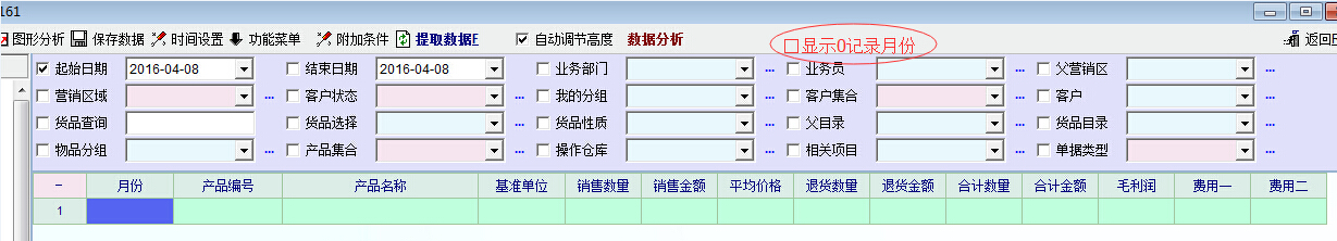 建议在检索条件中添加“显示0记录月份”检索条件,类似库存报表中的“含0进出”。这样当需要进行环比、同比数据分析,或者判断未来趋势时就可以满足要求了。