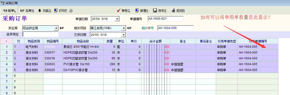 物资单据确实应增加被引用原单数量及已引用数量,金额可以不用加,如果增加金额就太复杂了。现在的系统F6的功能只是有编辑表单权限的才可以打开,如果只有审核权限的用户是打不开的。所以更应在面单中增加原单数量及已引用数量,方便审核人员判断。