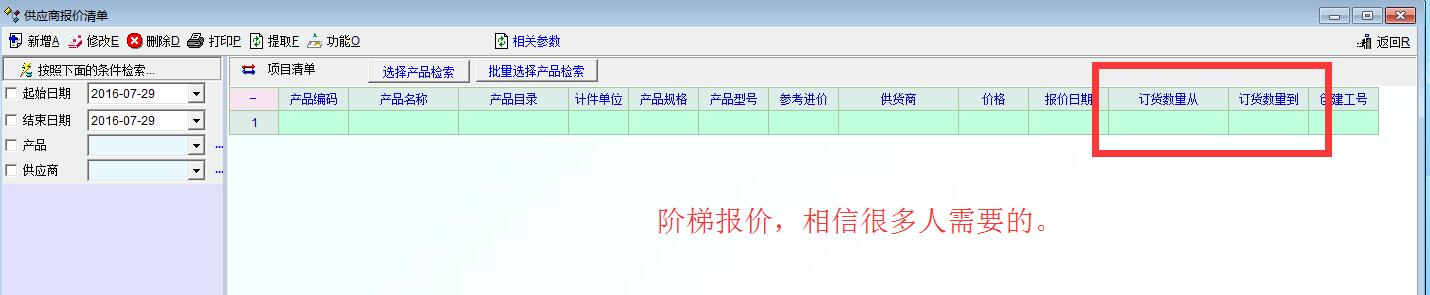1这两处都没有阶梯报价,但是现在阶梯报价是常态,供应商报价清单默认价格是1个,如果能加上数量范围就好了。