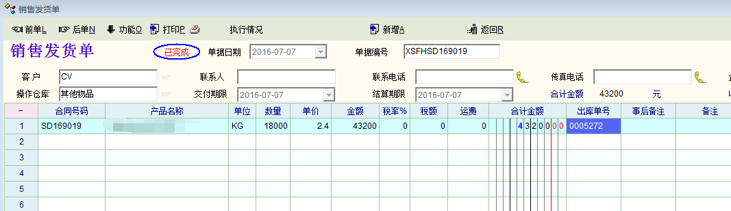 销售发货单单据编号想通过脚本生成,既等于明细中合同号码加上“XSFH”,如图所示。脚本如下: