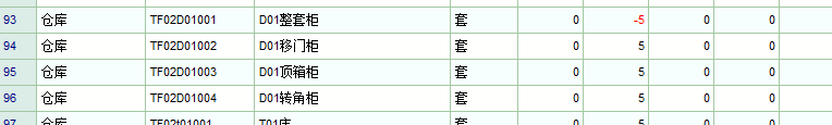 因为库存里并没有代码TF02D01001这个产品5套,所以就是-5套。