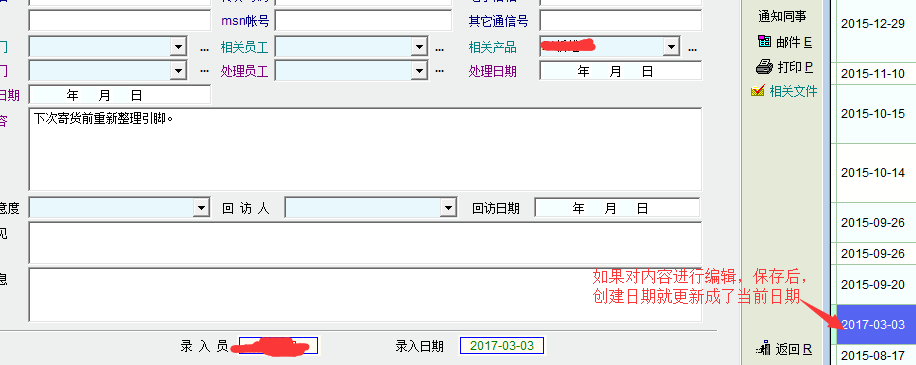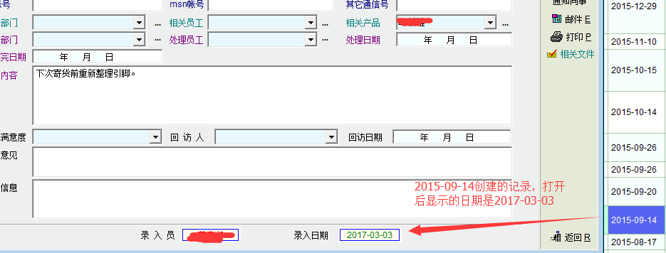 怎么不更正、优化一下呢?使用中有时候会造成很大的困惑。就像客户投诉中按照事件日期进行检索,根本没法得到正确的结果,不知道到底是与哪个时间对应:事件日期与创建日期都对应不上。