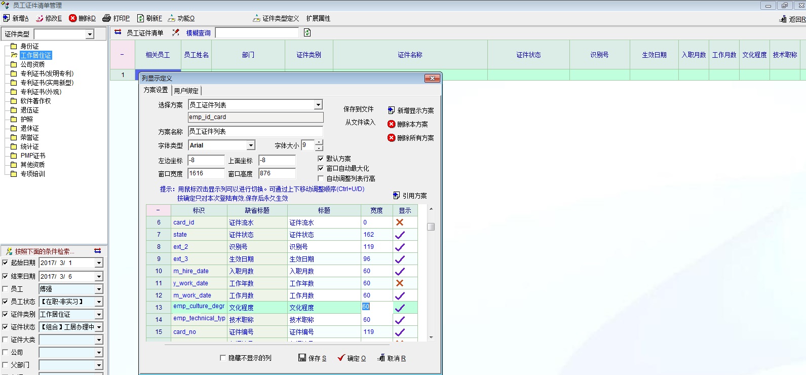 讨论_【建议】员工证件清单管理-显示定制(列显示定义)关联学位_产供销
