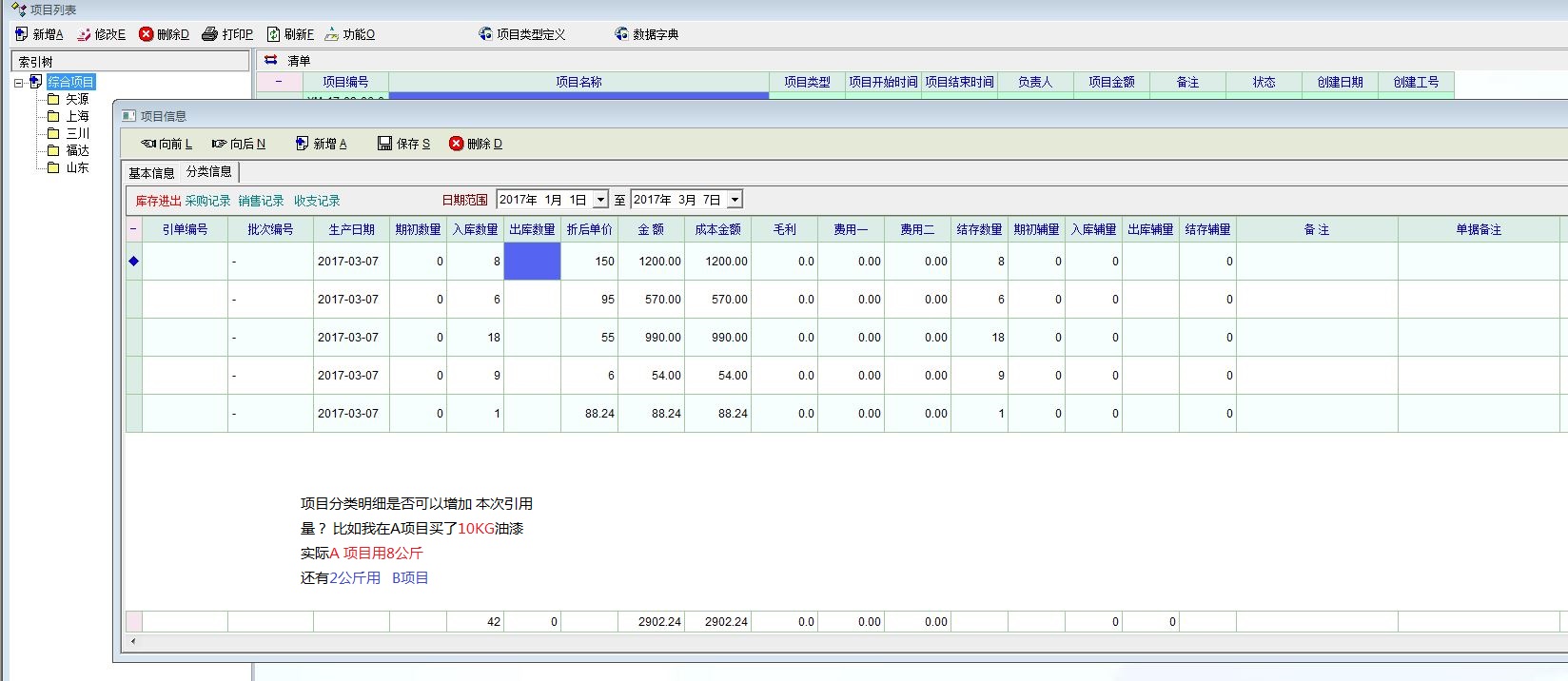 比如,我在项目A 采购了10KG油漆。实际A项目只用了8KG。还有2KG 下次B项目引用。这样A项目引用80% (8KG)