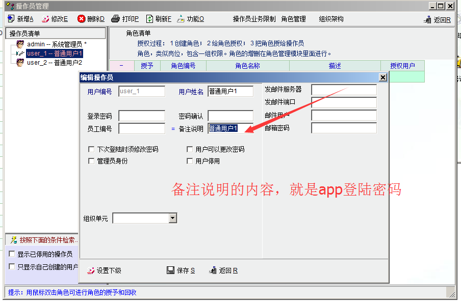 使用公司自己的服务器时,必须 设置一下oit软件中的用户的备注(app的登陆密码)。