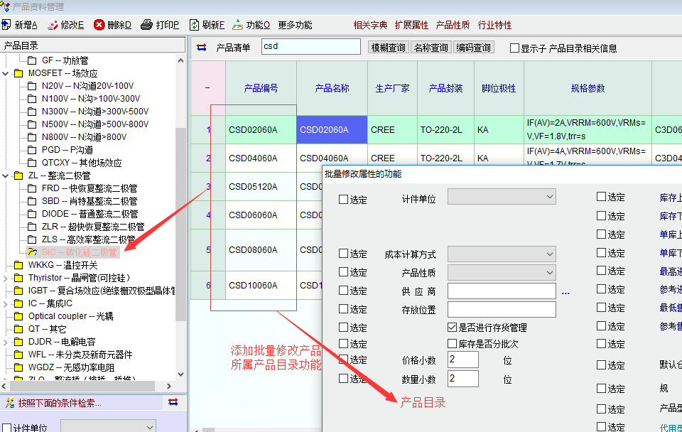 求助_请问系统可有批量修改当前界面上所有产品所属产品目录功能?_产供销