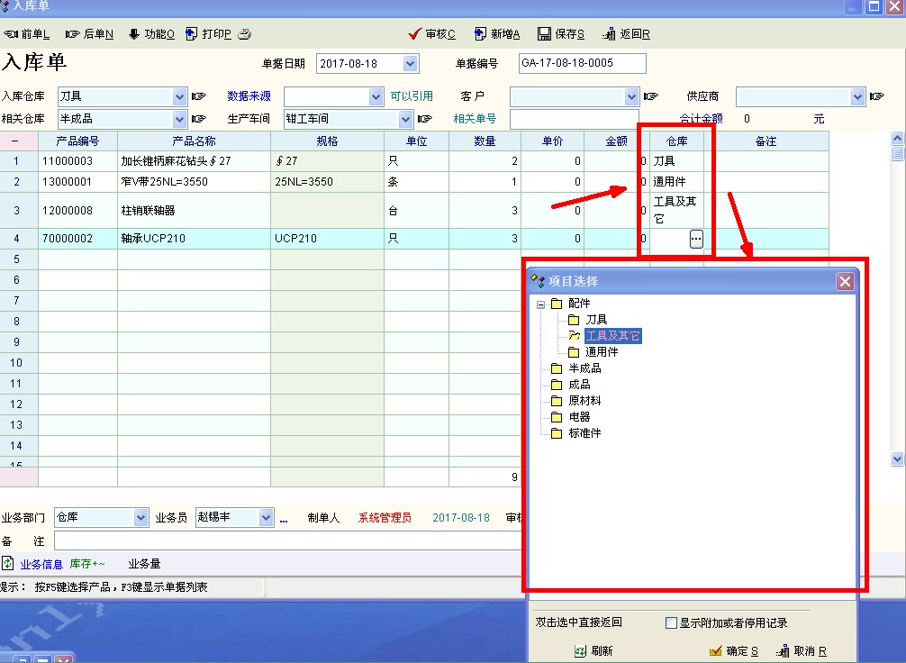 | 学习交流 » 产供销 »需求:库存单据在输入产品名称时,对应的默认仓库能够直接跳转显示
