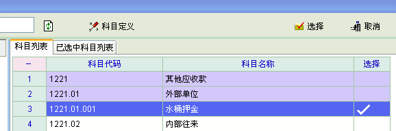 建议实现:①单击 选中某个末级会计科目用“单击”,这样可以选多个未级会计科目,再点“选择”按钮后才能到会计凭证界面。