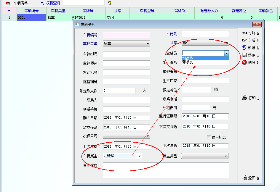车辆卡片中函数如何实现以下功能,车辆属主选择“刘德华”,驾驶员只显示“刘德华”,选择“张学友”后,只显示“张学友”