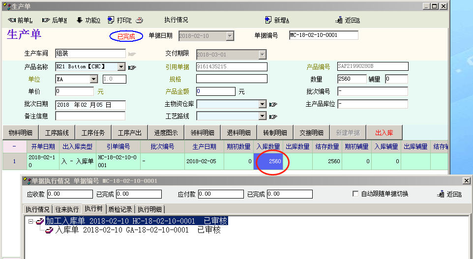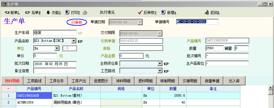 单据要审核后才能够被下级单据引用。这个肯定是知道的 "加工入库单"在相关业务流程中改成 加工入库单引用出库单的话,引用过来的不是所需要入库的明细 PS:产品是由2个物料组装而成的 |