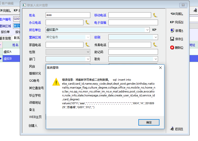添加联系人后保存会出现错误提示。