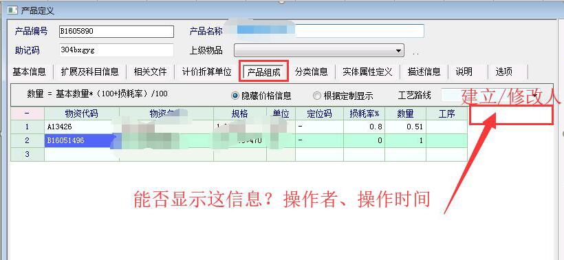 BOM组成能否增加操作人与时间,方便跟踪