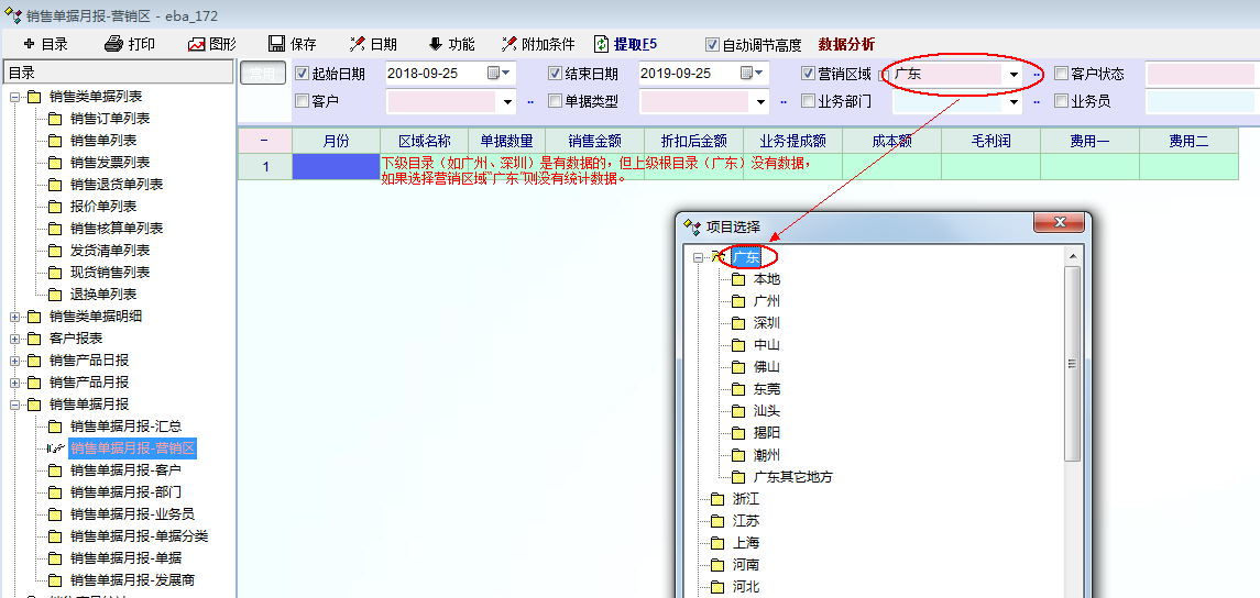 现在只有营销区域 ,并没有选择父级营销区域的控件,所以需要把营销区域全选上。